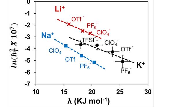 This research documents the first time that the Nobel Prize-winning Marcus-Hush theory of electron transfer has been used to study the impact of electrolyte composition on the movement of ions through the electrolyte, and their reaction at the surface of the electrode.