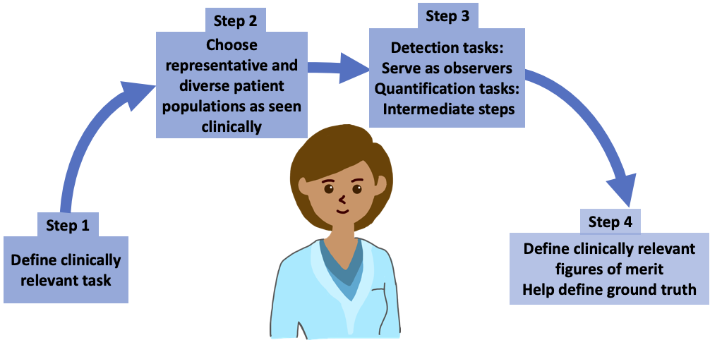 The framework the team proposes is based on principles from the field of objective assessment of image quality. It provides a mechanism to evaluate AI methods on tasks such as detection, quantification or both. Further, it suggests that the evaluation should model patient populations seen in the clinic, which may include different ethnicities, races, genders, body weights and ages.