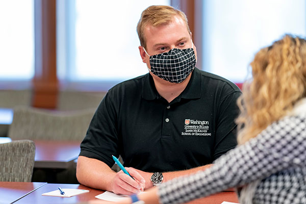 Tucker Krone, who earned a bachelor’s degree in biomedical engineering in 2012 from the School of Engineering at Washington University in St. Louis, returned to join the faculty of WashU in 2017. Now a lecturer in the Division of Engineering Education, he’s been named a 2022 recipient of the Dean’s Faculty Award for Excellence in Teaching.