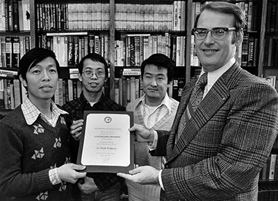 Peters and his wife left for California and came back to St. Louis and Washington University in 1975, with children Michael and Laura in hand (son Nathan was later born in St. Louis). In 1974, at the urging of then Mechanical & Aerospace Engineering chair Salvatore Sutera, PhD, Peters interviewed for a faculty position at Wash U, but turned down a job offer. A year later, he and his wife discussed the decision one morning and concluded that they’d made a mistake. Later that same day, Peters received a letter from Sutera, who once again offered him the position.