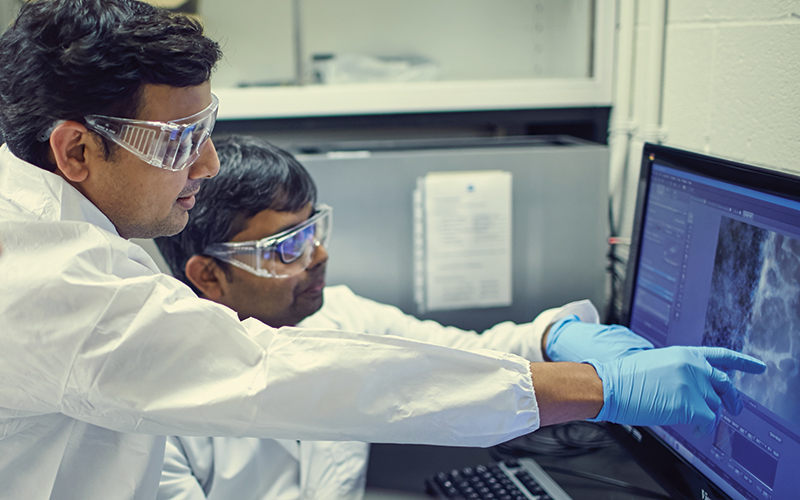 In his research, Amit Pathak, assistant professor of mechanical engineering & materials science, has found that cancer cells can migrate alone or in groups to metastasize. His lab is making different kinds of biomaterials that mimic different properties present in humans, such as stiffness in the environment or geometry, then studying how cells behave in those environments.