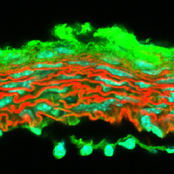 Wagenseil’s research focuses on the functions of the large arteries. While Taber studies the development of organs from a tube, Wagenseil studies the maturation and remodeling of the tubes. She and her team manipulate the tubes through genetic modification of extracellular matrix proteins, which alter the mechanical properties of the tube and the resulting form and function.