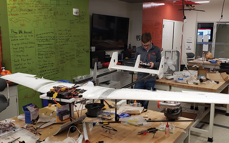 “Odds are, if you’ve ever passed by the makerspace, there’s somebody from Design/Build/Fly in there,” Tuleja says. “Leadership meets every Friday and will stay in there until midnight. We have meetings that start at 11 a.m. on Saturdays. We stay until 5 or 6 and take a break for dinner — and sometimes come back.”