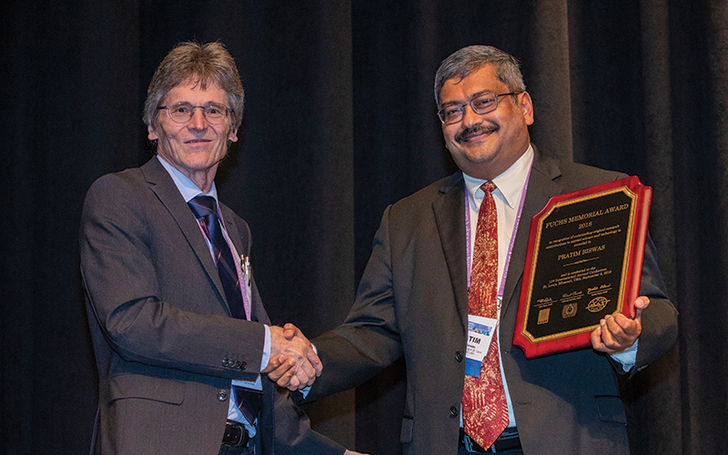 Biswas, also assistant vice chancellor of international programs and chair of the Department of Energy, Environmental & Chemical Engineering, holds 10 patents and has spun off two startup companies based on his inventions, including Applied Particle Technology. He has more than 400 refereed journal publications. His work applying aerosol science to energy and environmental nanotechnology, solar energy use, air pollution control, medicine and other areas was recognized in 2018 with the Fuchs Award, the highest honor given worldwide to an aerosol scientist.