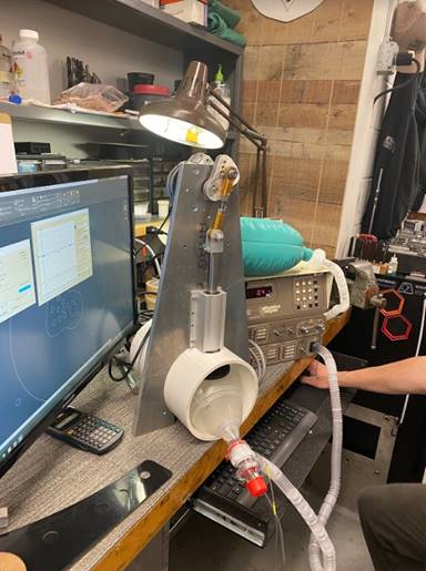 Within two weeks, a "1st generation" emergency ventilator ("AmbuVent") prototype was completed, with control of tidal volume, breathing rate, and inhale/exhale timing. The device was calibrated and tested in the clinical simulation lab. Feedback from medical staff was used to improve the design, including electronic calibration and safety limits. Three "2nd generation" prototypes have been assembled with a touchscreen interface for control of breathing rate, tidal volume, and inhale/exhale ratio.